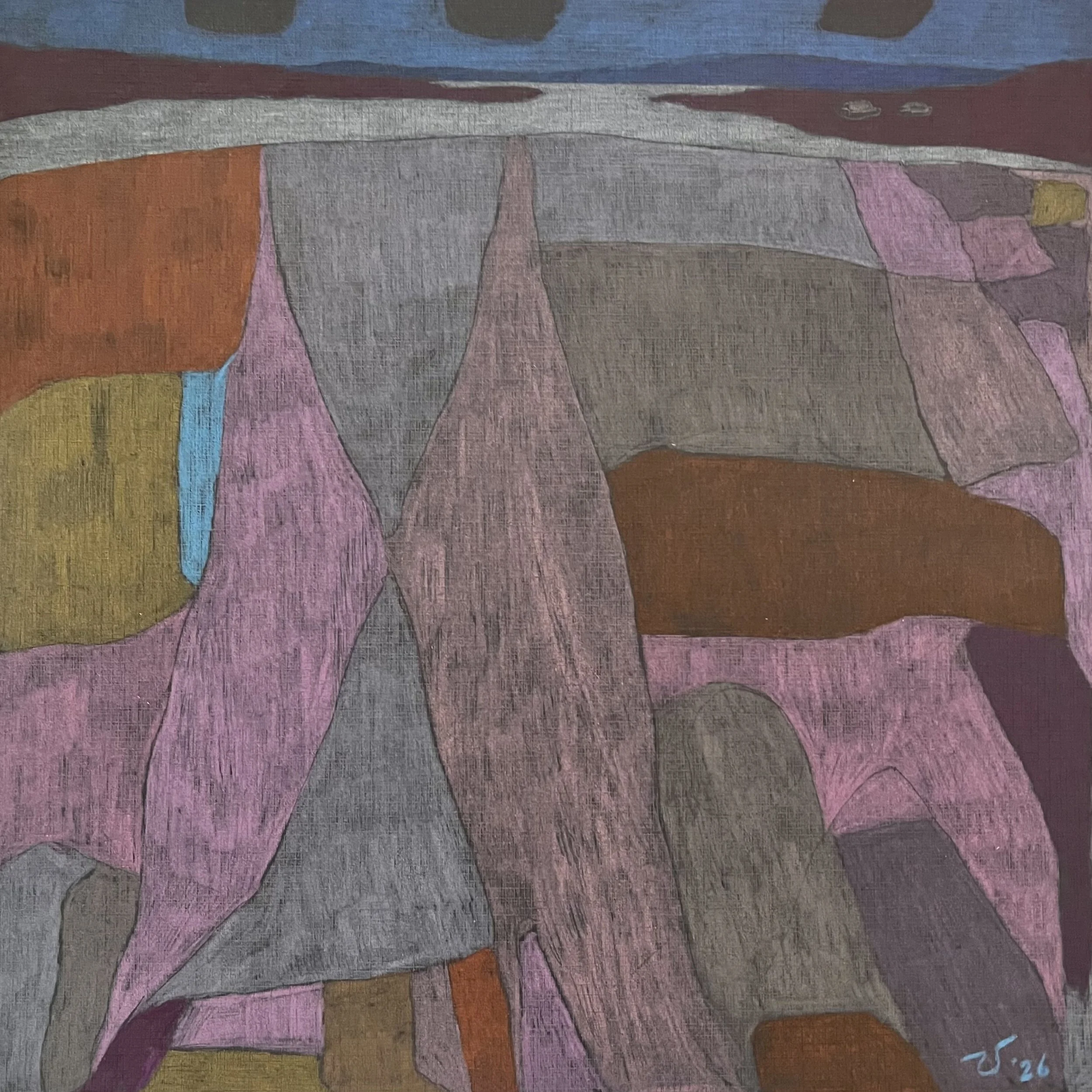Landscapes made on consecutive mornings beginning the last week of 2025. Color pencil on black linen archival paper, they are all studies for potential larger paintings.